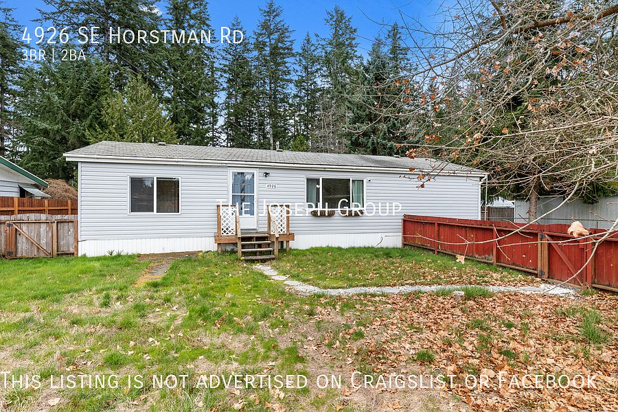 This 1152 square foot single family home has 3 bedrooms and 2.0 bathrooms. This home is located at 4926 SE Horstman Rd, Pt Orchard, WA 98366.