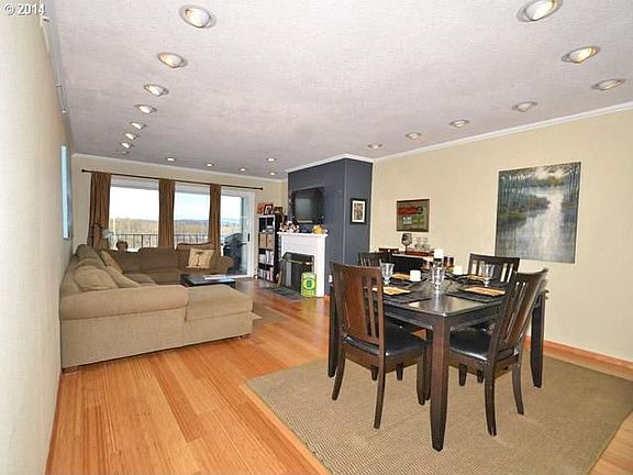 Shows like new throughout. Newer Bamboo flooring in living/diningroom with brick fireplace. 2 bedroom and 2 full baths. Awesome Views of River and Mt. Hood and overlooking Johns Landing. Refrigerator, washer and dryer stay. Must speak to owner (Andrew)before showing with 2 hour notice please.