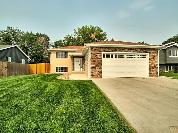 Five bedroom, three bath Rapid Valley home ready for new owners! Well designed floor plan with large kitchen including plenty of counter space and storage with tiled backsplash, three main floor bedrooms and two additional lower level bedrooms. All new commercial grade luxury vinyl plank flooring throughout the home, updated lighting fixtures, fresh paint and all appliances included! Freshly painted rear deck, well-maintained yard with underground sprinkler system and wood privacy fence. Over-sized 26x24 garage is fully-insulated and finished and features 8' overhead door with windows along with stone column accents. This home is priced right and move-in ready. Schedule your private tour today!