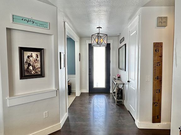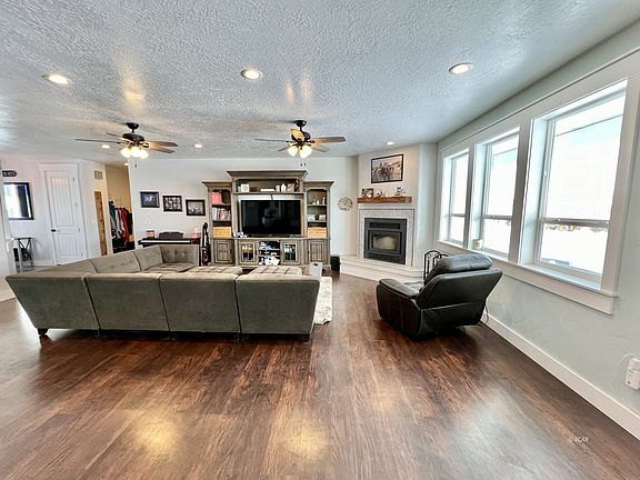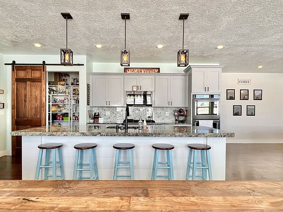Welcome home! Boasting 6 bedrooms and 4 full bathrooms. As you step inside, you'll be greeted by ample sunlight from the many windows. The sitting room is the perfect place for hosting guests. The kitchen is a chef's dream with custom cabinets, pendant lighting, walk-in pantry with hanging barn door, granite counter tops, gas stove, double wall ovens and an extra-long island with bar seating. The living room is both spacious and cozy with a mosaic framed fireplace. All bathrooms have granite countertops and tile flooring. All bedrooms feature ceiling fans and carpeting. Master suite has a large walk-in closet with built in shoe racks and drawers. Master bath features a jetted tub and tiled walk-in shower. The loft located on the 2nd floor can be used as a family room, office, or craft room. Storage is not an issue in this home, thanks to a dedicated storage room. The 3-car garage provides ample storage space for your vehicles and toys. The property has been fenced for pets with water and electrical already setup. The backyard features a covered patio, lawn, and automatic sprinklers. This home combines functionality with style, making it an excellent choice for big families.