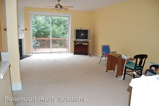 BEAUTIFUL HOME w/ GARAGE ** CONVENIENT LOCATION! Beautiful home with open floor plan and attached garage. Roomy Living and Dining room with fireplace and doors to deck. Spacious kitchen with ceramic top stove, bottom freezer refrigerator, dishwasher & microwave is open to Living/Dining room. Master bedroom has huge closet and lots of natural light. Ground floor has third bedroom or office/den. Half baths on 2nd floor and ground floor. Deck and patio back up to trees for privacy. Close to everything! Just off Old Wake Forest Road. Pet policy: 1 small-medium dog permitted. $250-$300 pet fee.