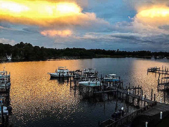 Beautiful,spacious,gated,three bedroom three bath condo with the most amazing sunsets you have ever seen. Very open floor plan with new wood flooring,tile and paint,screened porch,assigned covered parking,approx. 5'x 8' storage room,deeded boat slip, 6 additional pilings added,large enough for an approx. 40'boat. Perfect for enjoying peaceful surroundings,sunsets,gorgeous water views,boating and fishing and just minutes from the beach.