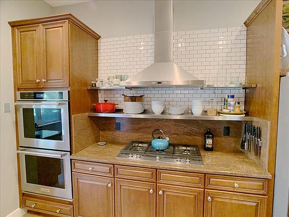 One-of-a-kind gem in the desirable, centrally located Lakeridge Terrace community! Gorgeously updated and meticulously maintained 2006 built beauty you have to see to believe. This non-attached home with tile (not shake) roofing has an amazing open concept design with high ceilings and tons of natural light. Amazing open concept living area with high ceilings throughout. Jaw dropping great room with tons is highlighted by the chef's kitchen with elegant granite counters and breakfast bar, top of the line KitchenAid stainless steel appliances, dual ovens, gas cooktop, subway tile backsplash, upgraded hood and elegant cabinetry. Art deco styled fireplace, spacious dining area, wet bar/ wine storage area with under cabinet lighting and an additional breakfast nook as well! Luxurious master with its own gas fireplace, en suite bath with giant tiled shower, garden tub, dual sink stations and large walk in closet. Master also has it's own access door to one of the two private decks, perfect for a morning coffee or evening libation! Two more well sized bedrooms with plenty of closet space. Lovely, spacious laundry room with sink and plenty of cabinets. Oversized 2 car garage with large windows for natural light and plenty of storage. Outside dog run. Close to schools, shopping and transportation. Access to community pool. Come check this one out today!