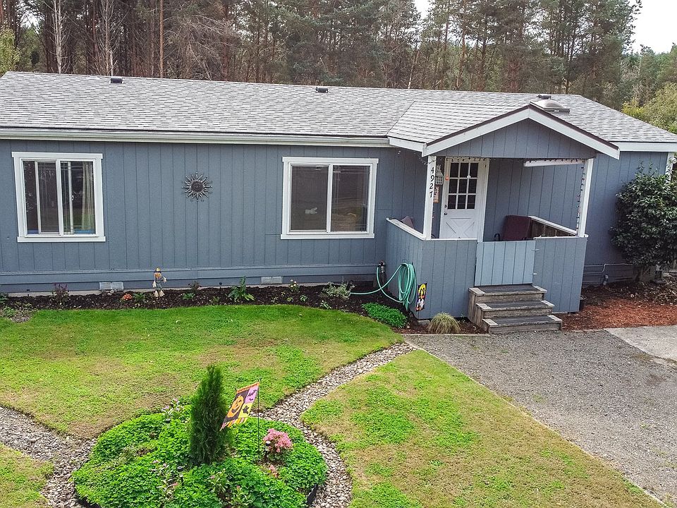 This updated home is on its own lot & doesn't have any HOA fees. It's located on a quiet street with a treed view in the backyard. Open floor plan with vaulted ceilings, skylight in the kitchen, laminate flooring and vinyl windows. Sliding French barn doors lead to a large family room/bonus room for extra living space with backyard access. Primary bedroom with ample closets and an attached bathroom. Two additional bedrooms and a bathroom with a walk-in shower are on the opposite side of the house providing nice separation of space. Large fully fenced private backyard with a covered storage area & garden shed. Extra parking & room for an RV. Make this home your own!
