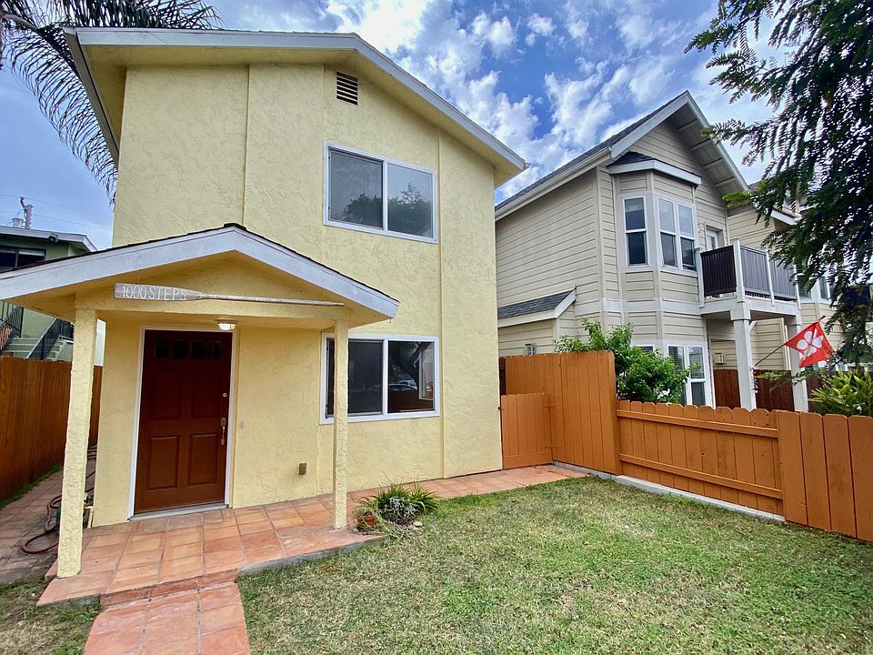 Updated 2 bedroom / 2 bathroom detached home with tons of private outdoor space, two car garage and large driveway for additional parking. This home features bamboo hardwood flooring on the first floor and new carpet upstairs. Downstairs features a large living room, full bathroom, dining area, updated kitchen and attached two car garage. Upstairs has two large bedrooms, second full bathroom and a 200 sq ft sun deck. Newer dual pane windows and blinds throughout. Lots of storage. Laundry hook ups are available inside the garage. Walkable location close to the beach and OB shops/restaurants. All showings are by appointment only. **Additional interior photos and video will be added on 01/25. Tenant pays for ALL utilities and landscaping. Pets are subject to owner approval. Additional fees and/or deposit will apply. Limit 2 pets. NO smoking. Attached two car garage and large driveway (2 cars) included with rent. Fenced front yard and large deck.