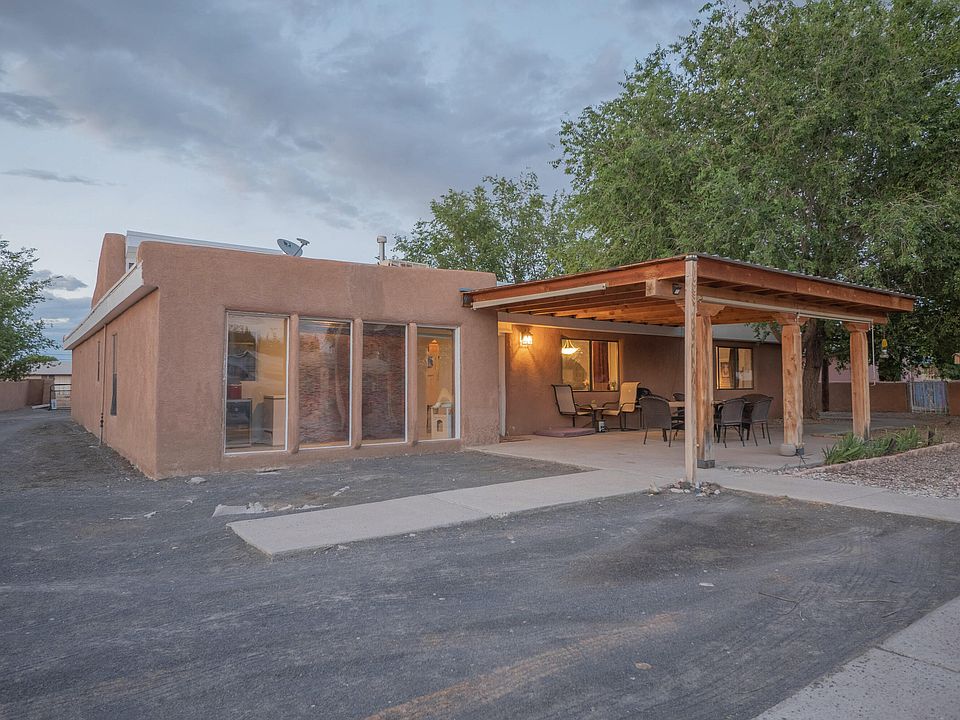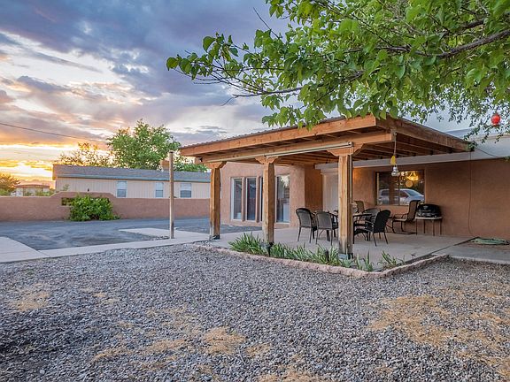 This gorgeous custom built adobe home with exposed vigas, wood beams & ceilings on almost 1/2 acre is a must see! Immediately feel at home with vinyl wood and tile throughout & comfortable carpet in the bedrooms. Exercise your green thumb in the bright sunroom or use your cooking skills in the open kitchen. The large primary bedroom w/ walk-in closet waits to serve as your private retreat. Enjoy comfortable temps year round w/ 15'' thick walls & traditional passive solar. This home boasts a tankless water heater, fruit trees, & large workshop w/ 30 amp electric, window unit cooler/space heater. Wake up to beautiful New Mexico sunrises & relax to painted sunsets while taking in the gorgeous Manzano mountains from the beautiful carved wood patio. This unique gem of a home is waiting for you