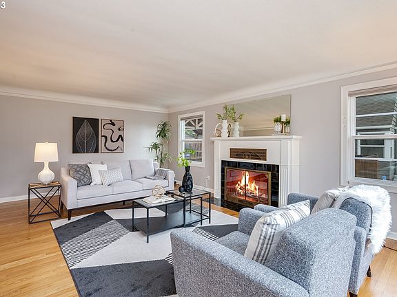 Great Woodstock area home with all the classically charming features you'd expect in 1948 but with modern amenities and upgrades. Host friends and family in the gated privacy of your backyard (kids play structure included) while hanging out on the covered wrap around porch. Or host a dinner party in the spacious formal dining and living room adorned with classic hardwood and arching entrances with one of two fireplaces going in the background. Enjoy breakfast and soak in the sunshine from the airy nook and newly remodeled kitchen. Enjoy the comfort of the main level primary bedroom and home office. Head upstairs to three additional bedrooms (one being a primary bedroom)all with new flooring, mini-splits, tons of storage and closet space for days! Finish off your tour with the lower level. Check out the potential of over 1400 sqft of additional living space with a gas fireplace and copious amounts of storage. Transform this versatile space (with interior and exterior access) into multi-generational living space, game room, hobby hole...you name it! So many options! Detached garage features enough space for parking and tinkering with a loft above(electric car charger included). Potential for ADU or garage/shop to be divided off and sold as a separate lot(confirm with the city). Don't wait. Come see this beautiful home, with it's original unique charm and modern touches. [Home Energy Score = 2. HES Report at https://rpt.greenbuildingregistry.com/hes/OR10221715]