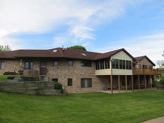 So many features to list in this sprawling all Brick ranch home on over 5 Acres in town! Large circle driveway for parking as well as additional parking in back next to the large 30x65 heated outbuilding with 1/2 Bath and workshop area. Well Built custom home with crown molding in every room. Open floor plan with fully finished walk out basement that includes two large bedrooms with attached Jack and Jill bath as well as fireplace and built in wet bar. This home also includes a small horse barn and stable for the horse lover! All measurements are aprox.