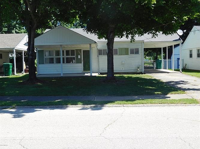 Well cared for 2 bedroom, 1 bath ranch. New flooring and paint throughout. Mini blinds replaced, new tile backsplash in kitchen. Great starter home or rental! Convenient location near I-265. Fenced yard with shed. Utility laundry room.