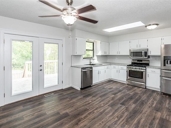This newly-remodeled 3 bedroom split in the Seckman schools area won't last long! The updated kitchen, enhanced by a skylight to let natural light in, includes like-new stainless appliances, including the refrigerator, as well as newly installed granite counters and new sink and faucet.  New flooring throughout, including wood-look vinyl plank in the kitchen, dining, living room, 2 bedrooms, downstairs bath, and hall; ceramic tile in main bath, and new carpeting in master bedroom and lower level great room. The main floor bath stands out with a freshly completed subway tile shower and new vanity. With ceiling fans in bedrooms and the living room you can enjoy a cool breeze anytime.  The large deck off the kitchen is perfect for hosting family and friends, and the backyard, which includes a raised area as well as an ample flat area, provides perfect the space for gardening and any backyard games you can think up!  This home is sparkling clean and ready for it's new family!