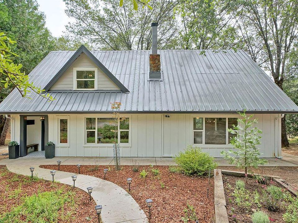 SITUATED ON 5 VERY USABLE EXCEPTIONALLY GORGEOUS ACRES, THIS QUAINT 1970's FARMHOUSE HAS BEEN SMARTENED UP LIKE NEW - Generous open floor plan with a formal living room, family room, country kitchen with an abundance of counter and cabinet space, quaint sun room, spacious remote master suite, with 3 additional bedrooms, 2.5 baths, indoor laundry. Yes, there is a bedroom and bathroom down stairs. Almost everything new including multi zone HVAC. Surrounding the home are lovely mature oaks, a giant fenced garden area, arena (no fencing), and barn pad.