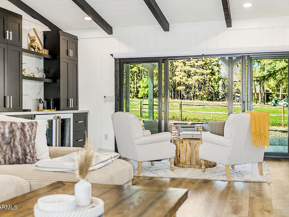 GOLF COURSE LOT, with NO HOA! What's better than waking up to the sound of the wind whistling through the pines? How about waking up to it in this picture-perfect, modern yet cozy, FULLY REMODELED, 3 bedroom, 2 bath home, situated on the 4th hole of the Continental Golf Course! Have your morning coffee on the covered back patio, while enjoying the neighborhood wildlife. This home is within walking distance to ''neighborhood favorite'' Oakmont Restaurant and is ideal for easy access to Snowbowl, Grand Canyon, Flagstaff Mall and Downtown Flagstaff! This stunning property offers a RARE blend of modern style and timeless charm that you won't want to miss. As you enter, you'll be captivated by the spacious open floor plan with cedar plank ceilings and wood beams and an abundance of natural light flowing through the home. The living room features a cozy gas fireplace, inviting relaxation and enjoyment during those cool Flagstaff evenings. The heart of the home, the gourmet kitchen, boasts Quartzite countertops, custom soft close cabinets/drawers, GE Café appliances ideal for culinary enthusiasts and gatherings with loved ones. Step outside to your private backyard retreat. A spacious patio provides the perfect setting for outdoor dining, entertaining, or simply soaking up the scenic beauty. Nestled in a friendly community, this property offers more than just a beautiful home. You'll be part of a neighborhood that values a sense of community and pride of ownership. Come and experience the exceptional quality of life this home offers. Currently being used as an Airbnb but also enjoyed as a second family vacation home. NEW Seller updates include, New Pella windows, GE Cafe appliances, luxury vinyl plank flooring throughout and so much more, please see documents tab for a complete list of seller updates.