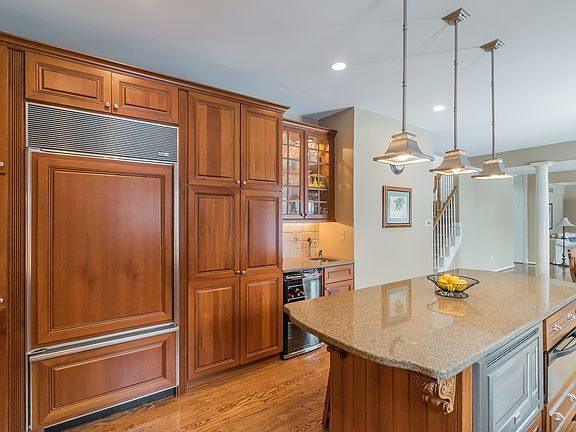 Located in the Custom Home community of Fox Hunt Estates, you’ll find this beautiful 4 bedroom, 3 ½ bath Bucks County home on a private 1 ½ acre lot with an in-ground pool and pool house. Enter your new home through the double front doors into the two story foyer boasting gleaming hardwood floors that flow throughout the first floor. The updated kitchen features granite counter tops, high end appliances, wet bar and wine refrigerator, oversized island with seating and opens to the breakfast room. The spacious two story sun filled family room has a brick fireplace and is open to the den. The kitchen, family room and den offer panoramic views of your private backyard oasis and the woods beyond your property line. You will find plenty of room to entertain in the formal dining room. Also on this level find a nicely sized office, full laundry room and powder room. Take one of the two staircases to the second level where you will find a newly carpeted and freshly painted master bedroom retreat with a large sitting area and walk in closet with separate his and her spaces that will meet everyone’s needs. A newly renovated spa like master bath with Italian marble and porcelain tile along with a luxury shower with wall jets is just waiting to enchant you. Bedrooms 2 and 3 have their own walk in closets. You’ll also find bedroom 4 and with new carpet and a full bath on this level. On the lower level you’ll find the finished basement with endless possibilities. You will encounter a bedroom area with full bath, a full kitchen and living/entertaining space. There is also ample storage space for any other needs you may have. In the rear of the home you will find the perfect place to spend with your family and friends. Entertain around the fenced in salt water pool complete with heated and air conditioned pool house and private patio and fire pit. Updates and improvements are many with this home. Newer roof, furnace and air conditioner, garage doors and openers, pool heater, garbage disposal, microwave, well pump and water system.