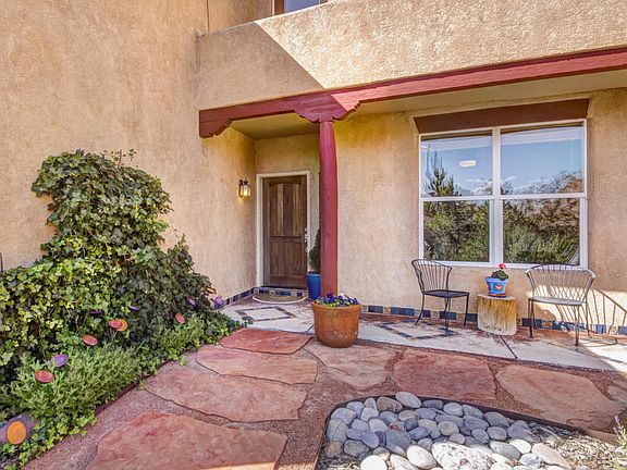 This stunning home on .45 acre enchants from the moment you cross the threshold & view the spectacular garden & mountain views. Open floor plan is perfect for entertaining & seamlessly integrated w/ an extraordinary outdoor space that includes cascading gardens, a magical pond, herb garden, private patios & even a separate, heated studio that can serve as an office or exercise room. The upgrades & attention to fine detail are endless: from granite kitchen counter tops & maple cabinetry to beautiful vigas & tongue & groove ceilings. Plenty of private & family space w/ no shared walls between bedrooms. An extraordinary master suite features panoramic mountain views & balcony to view city lights. Private setting, RV parking & close proximity to sought-after schools & shopping. A true gem!