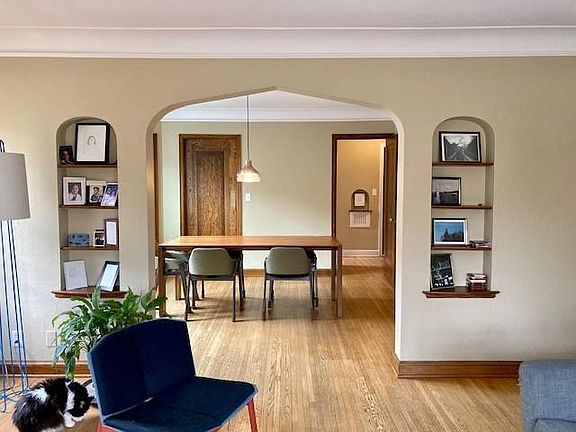 Beautiful turn of the century duplex 1 1/2 blocks from Lake Harriet and 1/2 block from 50th. Near restaurants, Minnehaha Creek, the Lakes. Second floor unit is available starting February 1. Hardwood floors throughout. Working fireplace. Includes one stall in garage and other outdoor parking. Fenced in back yard so pet friendly. Free washer and dryer and large lockable storage room in basement. Window air conditioners included. Heat, water, trash and lawn included. Tenant pays electric, internet, and shovels. One year lease required. Credit and background check required throw Zillow. No showings during COVID until after lease signed. Heat, water, trash and lawn included. Tenant pays electric, internet, and shovels.