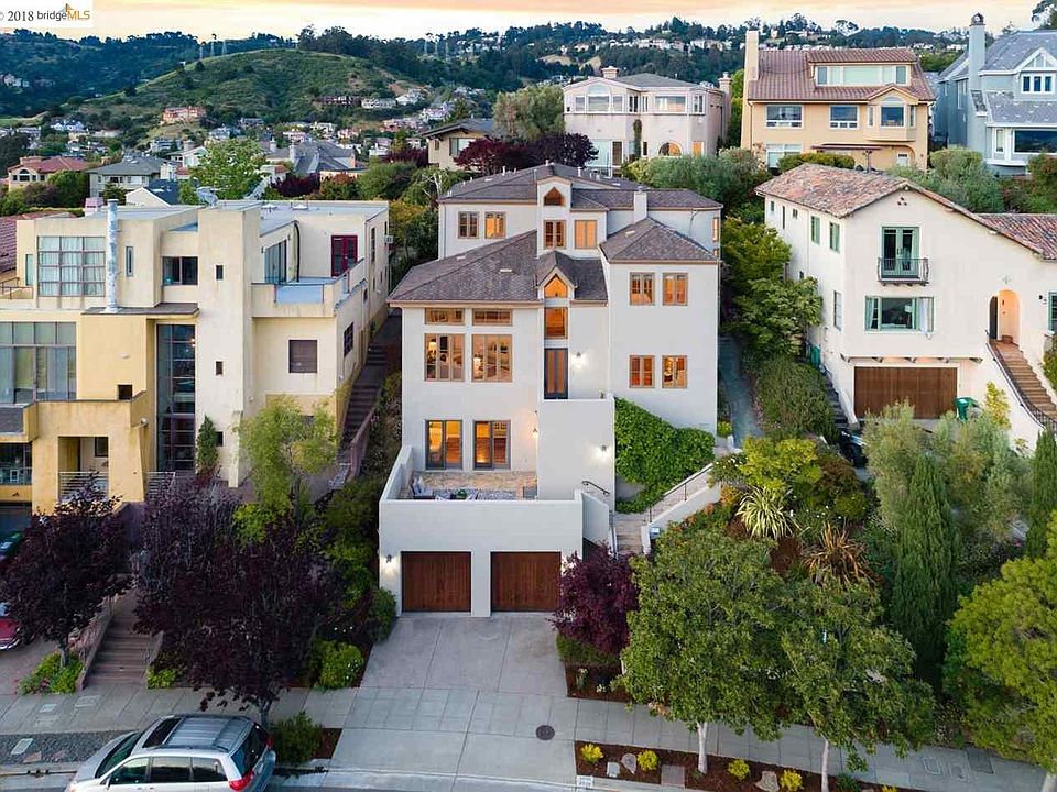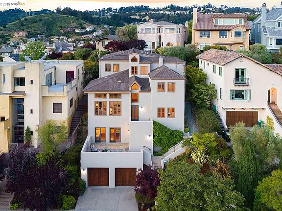 Contemporary architecture with hand picked custom finishes, panoramic 3 bridge San Francisco views and a subtle Mediterranean flair create this exciting 6 bedroom, 4 bath hillside residence located in coveted Upper Rockridge. 4928 Proctor Avenue is a state of the art retreat only minutes away from The City. The impressive facade is embraced by verdant, evergreen plants while a gentle flight of stairs draws one's attention to the main entrance of the home. Inside, warm Brazilian cherry wood floors, soaring coved ceilings and custom decorative ironwork welcome you and sets the stage for what awaits beyond. Completed in 2000 by master builder Antoney Wong, this successful achievement in contemporary architecture definitely takes you into the future while considering all of the elements that create the perfect environment for today's lifestyle.