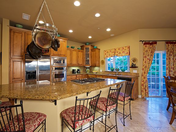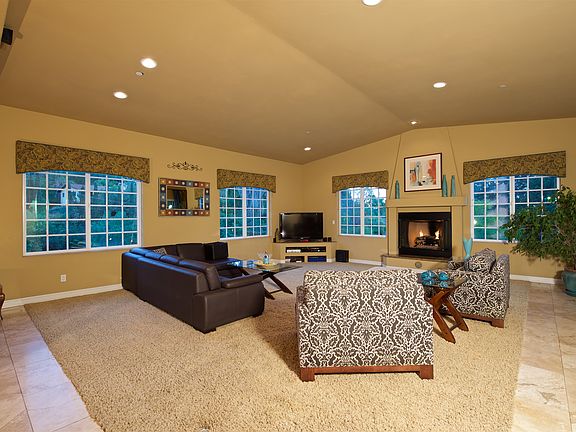 Distinctive Tuscan villa with private location in central Mt. Helix built in 2003. Single level 4 BR 3.4 BA with 'great room' design, 12' ceilings & travertine floors. Approximately 900sqft additional finished space downstairs w/ 5th bath ideal for granny flat. Gourmet granite and stainless kitchen with large pantry that accommodates 2nd refrigerator. Fabulous outdoor entertaining with pool, spa, slide, waterfall, fire pit and full palapa bar. Oversize garage, workshop and abundant parking. Great family home with excellent cul-de-sac location and best schools.