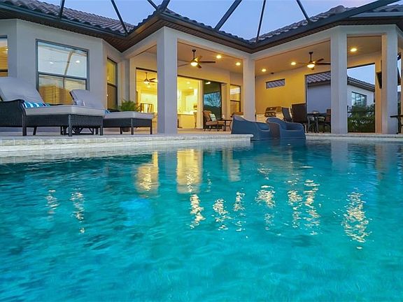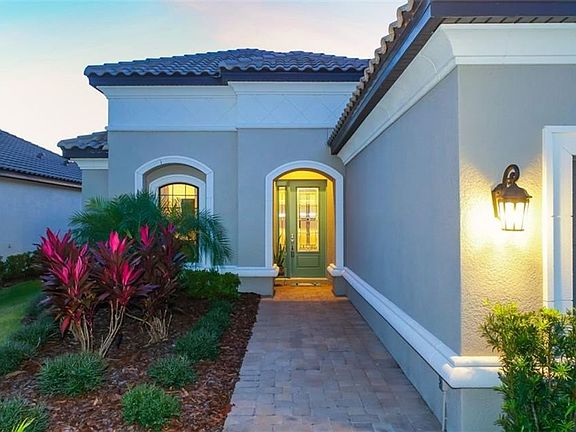 Behind the gates of Esplanade in Lakewood Ranch you will discover your new home that looks like pages right out of a designer magazine. With almost $190,000 of options and seller's upgrades this home looks better than new! Enjoy the Florida resort lifestyle in the extended screened paver lanai with inground heated pool featuring travertine ledge-stone raised decks, waterfall with submerged sun-shelf all in Pebble-Tec finish. Outdoor entertaining is a breeze with a fully equipped summer kitchen along with a large covered dining and entertaining area while overlooking the sparkling pool. The gourmet kitchen is equipped with stainless steel appliances, stone mosaic backsplash, large one level quartz island/prep area, wood cabinetry and flows to the dining area and great room with triple stack sliding doors opening to the outdoor pool area. The master suite is inviting and flows to a full bathroom and large walk-in closet with custom organizers. Additional upgrades include 3 car garage with additional 4' extension, en-suite bedroom with full private bathroom, flexible floor plan with bonus/media room or 3rd bedroom plus den, crown moldings, interior doors upgraded to 8' high, tankless water heater, no carpets for allergy-free lifestyle, built-in speakers and much more. This is a FULL GOLF MEMBERSHIP maintenance free home offering 18 hole championship golf course, tennis center, two resort style pools, walking distance to the wellness center, clubhouse, pickle ball, dog park and an active events calendar.