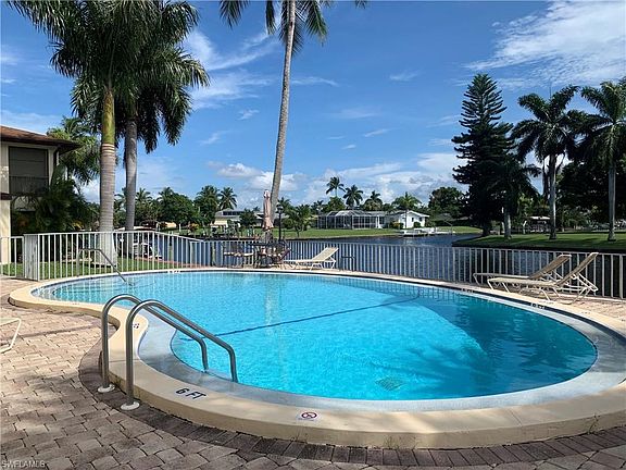 Boaters Dream! 2 bedroom, 2 bath condo close to Cape Coral Yacht Club, perfect for boaters needing dockage and short ride out to the river! Enjoy the canal views from the extra-large tiled screened lanai. This bright and inviting unit also features a larger than normal owners suite, tile flooring in the guest bath, plantation shutters. Covered car port parking plus extra guest parking! The pool is heated for year round enjoyment, plus there is a pavilion with gas grills. The HOA is very well funded and at $315 a month has one of the lowest fees in the area. This terrific location is truly in walking distance to shopping, dining and the Downtown Cape Coral entertaining scene. Just a short boat ride or cycle to the Yacht Club beach, tennis and marina.