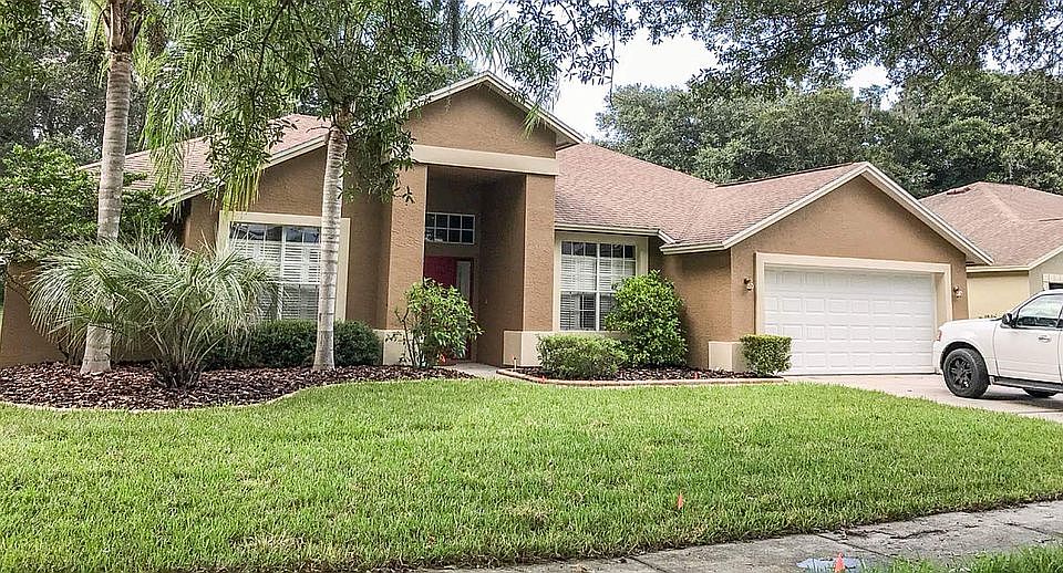 Home is a 4 bedroom 2 bath, with den Kitchen features granite countertops, upgraded cabinets. Newly installed floor. There is a dining area that overlooks backyard with no backyard neighbors Family room is open and air and offers built in bookcase and oversized triple glass sliding doors that bring a lot of natural light in from Lanai and back yard. Lanai includes 220v plug for hot tub/jacuzzi. The formal dining room has plantation shutters and is currently being used as children’s play area. Office/den has French doors with blinds to be used as guest room, office, and is currently set up as class room. Master bedroom has sliders that open up to lanai with his and her closets that include California closet shelving. Master bath has a glass block shower and dual granite counter top sinks. The back yard has plenty of room for entertaining new pool with heat pump as of 2018. Home is located in Riverhills where you can enjoy the community pool, basketball, tennis, playgrounds, and golf course.