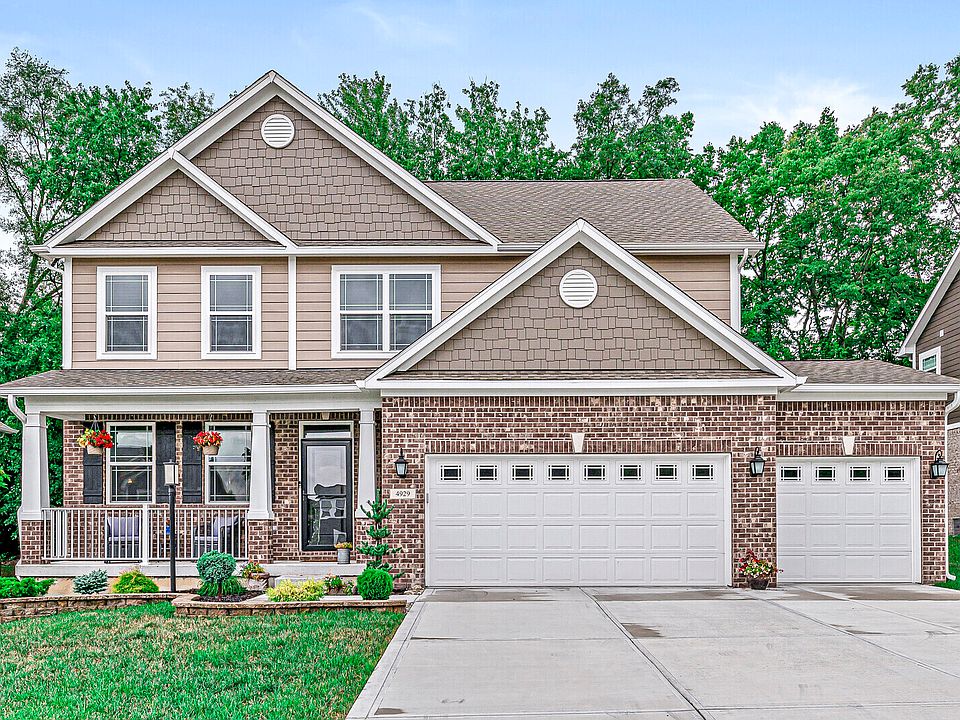 Fall in love with this 4-bed, 2.5-bath home in Center Grove school district! The main level features 9ft ceilings throughout and includes a spacious eat-in kitchen with quartz counters, center island, a farm sink and stainless steel appliances. Lounge in the roomy living area or transform the flex room into your home office! Primary bedroom offers luxury with 2 walk-in closets, dual sinks, and a garden tub w/ separate shower and tile surround. The Unfinished basement also has 9ft ceilings and is pre-plumbed ready for your finishings. Plenty of parking space in the 3-car, fully finished garage. You'll love the privacy in the fenced backyard backing up to the woods. Dont waste time building a new home as you can move right into this one!