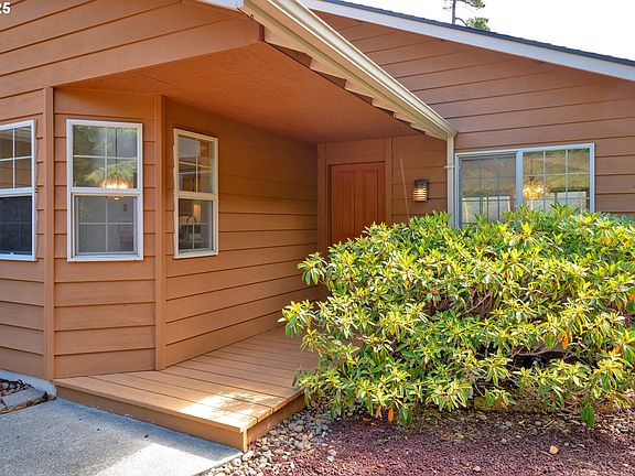 Nestled in the desirable coastal community of Idylewood, this well-cared-for 3-bedroom, 2-bathroom home offers comfort and charm with fresh interior paint and a thoughtful layout. The light-filled living area features vaulted ceilings and opens to a sunroom, ideal for enjoying the outdoors in any season. A dedicated dining area is located just off the living room, while the kitchen offers its own cozy breakfast nook, along with a skylight and breakfast bar for added charm. The primary suite includes a walk-in closet and private bath with step-in shower. Two additional bedrooms provide space for guests or a home office. Complete with a laundry room, attached two-car garage, and a naturally landscaped border of trees and bushes for privacy, this home is a serene retreat just minutes from the beach and town.