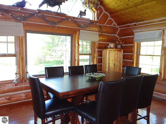 MAKE THIS YOUR FULL TIME HOME, A PRIVATE RETREAT, POSSIBLE BED AND BREAKFAST, OR CORPORATE RETREAT. CUSTOM BUILT FULL LOG HOME HAS LARGE MAIN FLOOR LIVING ROOM AND A LARGE KITCHEN AND DINING AREA FOR ENTERTAINING, MASTER SUITE UP, 3 BEDS AND 3 FULL BATHS, AN ADDITIONAL 3 ROOMS ON LOWER LEVEL CURRENTLY USED AS BEDROOMS AND STORAGE, LARGE FAMILY ROOM WITH WALK OUT DECK AND BEAUTIFUL VIEWS, MAIN FLOOR LAUNDRY, WALK IN CLOSETS, PANTRY, LOTS OF STORAGE, DECKS, CULTURED STONE 2 STORY FIREPLACE, 20X25 BASKETBALL COURT, GAZEBO, 2 CAR GARAGE, LANDSCAPING AND 20 ACRES WOODED. SECURITY SYSTEM INCLUDED. MUCH OF THE FURNISHINGS TO STAY. TOO MANY PERKS TO LISTS. LOCATED OFF ROAD FOR PRIVACY. MUST SEE.