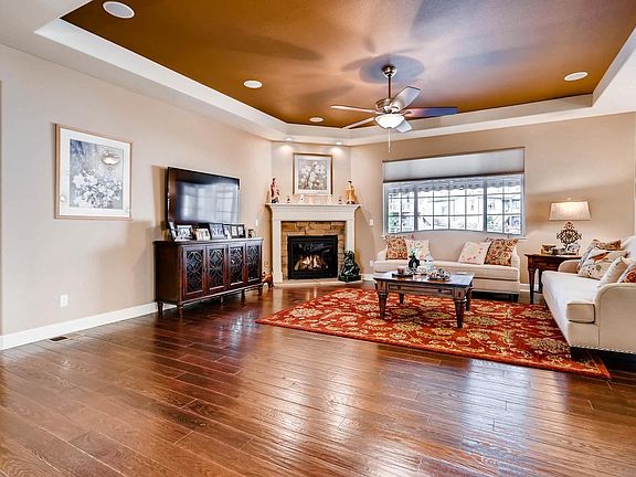 Exclusive Luxury Richmond Ranch Daniels Model! Over 4000 Finished Square Feet! This rare and spacious ranch home is designed for family gatherings, entertaining and recreation, 3-bedrooms plus main floor study or use as a 4th Bedroom, 3-bathrooms. Incredible wide open media room, game room with pool table and accessories with dry bar and mini fridge, exercise room. This beauty also features a gourmet kitchen with gas range and double oven, granite, refrigerator. Including washer and dryer. Outside, you'll find a large covered concrete patio with an extended awning in addition perfect entertaining, bbq grill (included). Xeriscape landscaping for maintenance free living. Hardwood floors on entire main level, 8 foot doors throughout. 1 year Buyers home warranty included!