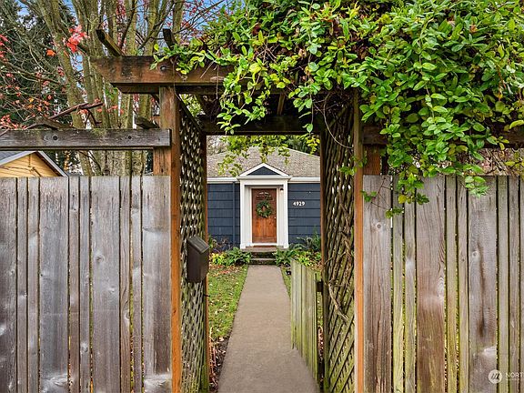 Indulge in the charm of this 2-bdrm, 1-bath bungalow situated on a large, flat, corner lot on quiet street in darling Seaview. Backing up to a greenbelt, this home has amazing privacy and great flow inside and out, with large covered back deck. Stylish finishes in the updated kitchen & bath, updated electrical system, double paned windows, refinished hardwoods. Plenty of bonus space in the detached 440 sf garage - wired for EV charging and features room for car, storage, and flex use, plus separate, finished heated office. The huge, fenced yard boasts mature, lovingly tended landscaping & amazing garden with drip irrigation. Amazing location, just minutes from the Junction, Alki, and Lincoln Park. Rare opportunity on coveted SW Bruce St!