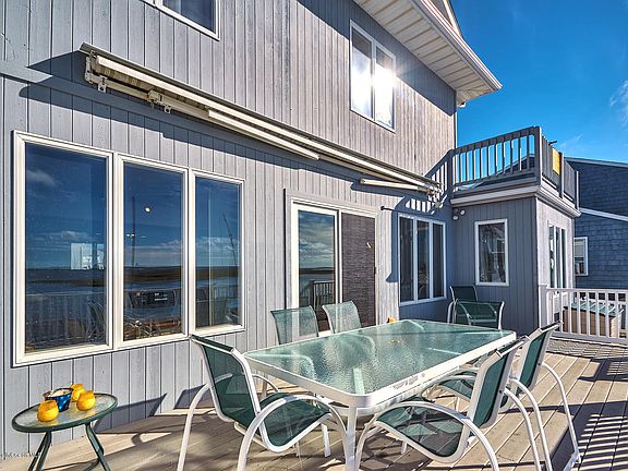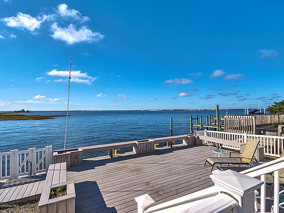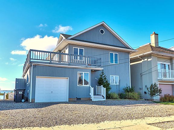 Incredible open bay views is what hits you first. Stunning sunsets to be viewed from your two tiered, maintenance-free, partially covered, fenced in deck, plus dock. Open kitchen/dining/living room with hardwood floors and sliders looking out over the water. Bedroom with open bay view on the first floor and three more on the second; making a total of 4 bedrooms, 2 full baths, plus outdoor shower. Spectacular views from a large rooftop sundeck, and oversized garage plus storage completes the picture. Just steps to the bay beach, with the ocean being a walk or short bike ride away. Make an appointment and come take a look.
