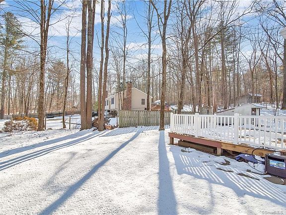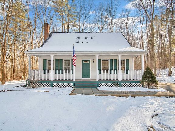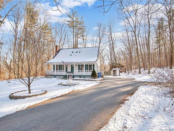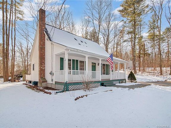 Come see this young cape tucked back from the road for privacy. The lot is level and wooded and features a backyard deck and patio, perennial gardens and a good sized shed. The front of the house has a large covered porch, perfect spot for a cup of coffee or glass of wine! Step inside and see the HUGE eat in kitchen with stainless steel appliances, a center island and granite counter tops. The kitchen is open with eating and dining area located by the end and adjacent to the back deck. Large living room has hardwood floors and sunlight streams throughout the many windows. First floor also includes a bedroom and full bath. Upstairs features two more really good sized bedrooms and another full bath. Lower level has a finished area that would make a great craft room or home office. Great location with easy access to Route 6.