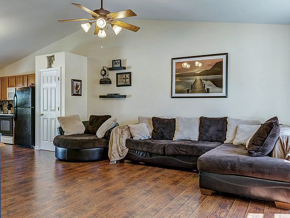 SEE! SIGH! BUY! Now is your chance to own this former display home! Beautiful curb appeal will have you falling in love as soon as you leave the car! This well appointed 3 bedroom, 2 bath great room floor plan with warm paint colors throughout and main floor laundry is sure to please! Great room boasts soaring vaulted ceilings, tons of natural light, and laminate wood flooring. Vaulted kitchen has upgraded cabinets, tile backsplash and pantry. Spacious master suite features walk-in closet and updated full bath. 2 bedrooms have BRAND NEW CARPET WITH DELUXE PADDING!! Flat back yard has upgraded vinyl fencing, custom patio and is dressed with well maintained landscape - perfect for entertaining! Seller has the basement all framed out and ready to finish - a lot of the hard work has been done - see for yourself! Neighborhood features walking trail, playground, sports courts and a pavilion! Close to highways, schools, and all your dining/shopping/entertainment needs! This won't last long!