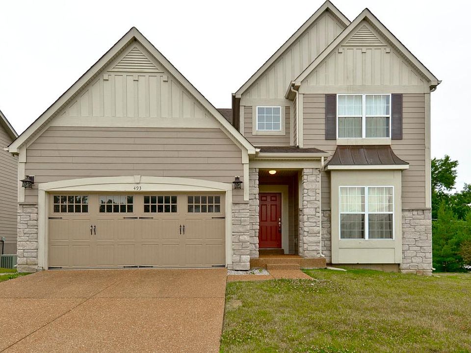 A beautiful 11 year old, 2 story home in Ballwin awaits you. This home has a very open floor plan with 9 foot ceilings on the main floor. The kitchen/breakfast rooms are both very large. There is a 14 foot breakfast bar, stainless steel professional 6 burner gas range with elegant hood and beautiful 42 inch maple cabinets. The family room is very spacious. This wonderful floor plan is great for entertaining guests. Upstairs are 3 large bedrooms all with walk in closets. You have a beautiful view of adjacent pond w/ a fountain. Master suite is a relaxing place at the end of a long day. Walk out basement provides plenty of additional storage. This is truly a great setting as home is adjacent to walking trails & the popular Ballwin rec center, "The Pointe".