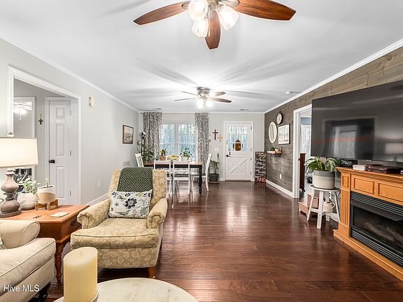 Looking for one level living on 2 acres with a full in-law addition? This is it! Perfectly setup for multi-generational living! This 4 bedroom 3 full bathroom property has been lovingly maintained and comes with many upgrades. The addition was built on in 2023, along with the HVAC and tankless water heater. The recently renovated kitchen features quartz counters, plenty of cabinet space, and stainless appliances. Through the kitchen you will find a full laundry room and landing area. The home has a split floor plan with the spacious primary bedroom suite off of the living room. The property is located in an (x) zone, no flood insurance required! There is no active HOA. The addition features a private entrance and exit with deck access, large chef's dream kitchen with charming built ins and a breakfast nook, bedroom, full bathroom with luxury walk-in shower, and living room with electric fireplace. The lot is private, with plenty of space to entertain. There is a 1 car attached garage, 1 car detached garage, and 2 sheds (one currently in use as a chicken coop). The room over the garage is spacious with plenty of storage. It is heated by a free standing electric fireplace heater and is cooled by the window unit. Schedule your showing today!