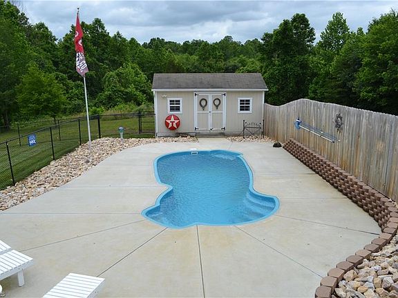 ABSOLUTELY BEAUTIFUL. This 3 bedroom, 3 bath home on 1.17+/- acres in Dogwood Acres is in move-in condition. Large kitchen with engineer wood flooring, granite counters, lots of appliances, spacious dining area that leads out to a covered back porch. The 12 ft X 21 ft back porch overlooks a salt water inground pool that was recently installed. Huge living room with fireplace. Finished basement that has so much to offer: Office, Den and bath. Huge double garage, lots of concrete parking and a detached carport. You will enjoy your morning coffee on the 24 ft covered front porch. Fenced backyard for your pets. Professionally landscaped yard with lots of flowers, grape vines and enough room for a garden. Very convenient location that is minutes to Greensboro and the Airport area. Don't miss out on this home. Call today before it's too late. Only $399,900.