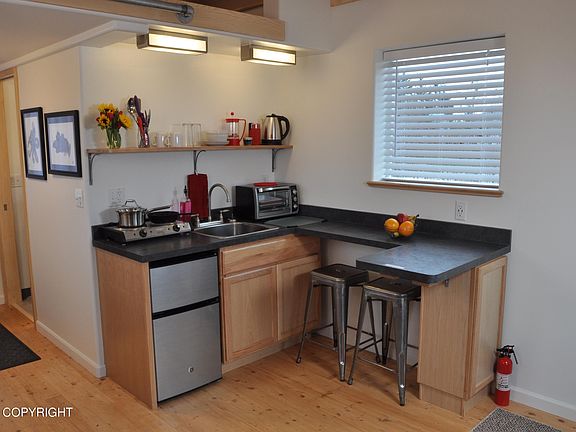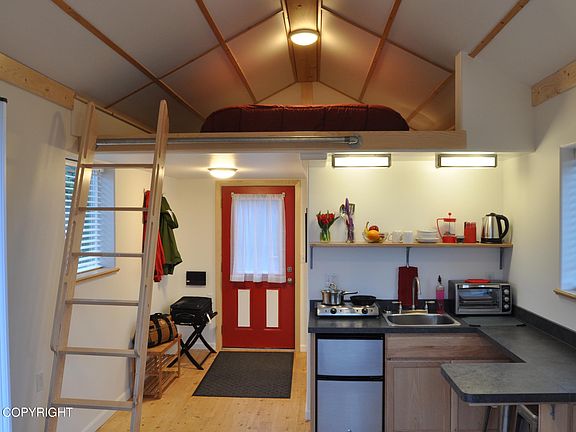 This Tiny House is situated in the middle of downtown Homer Alaska. Walk to everything! Steps from the library, walking trails and grocery store. Walk to restaurants, the beach, museums, the historic movie theater, and nightlife. Great views from this very successful short term rental property will bring you passive income or simple yet stylish living.
