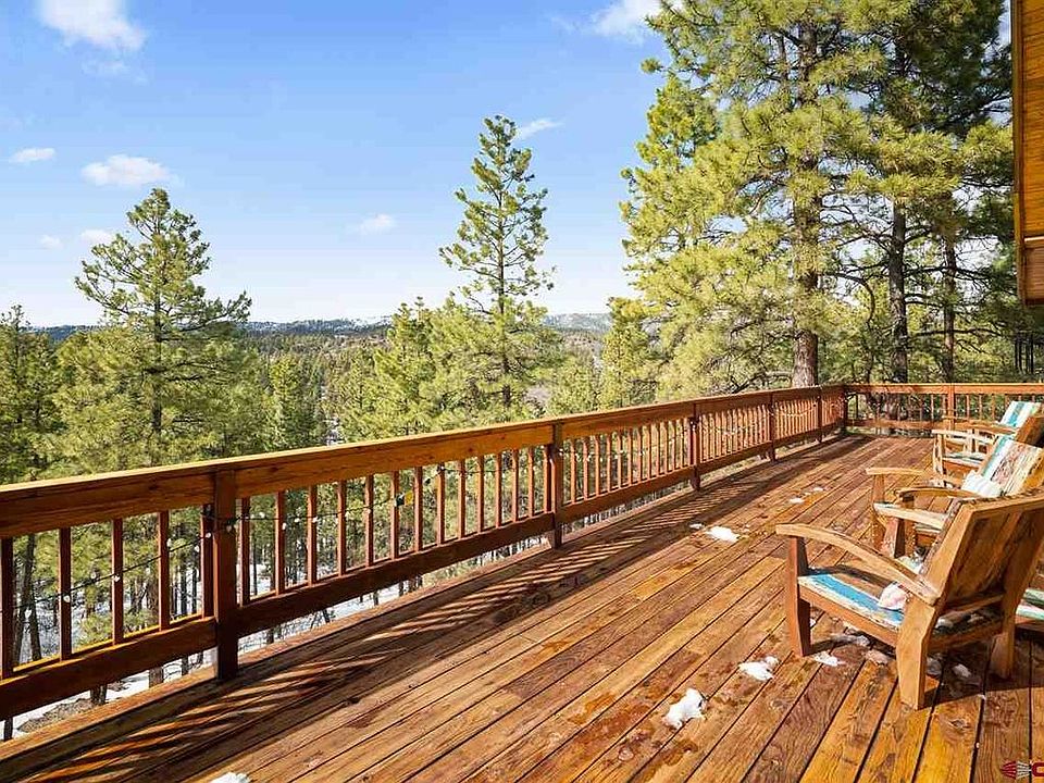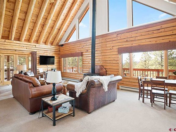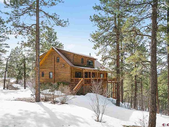 Wake up to views of brilliant blue skies and majestic, snowcapped peaks in this spacious mountain cabin. Located atop a mountain on 24 acres, this 3,400-sf home displays amazing views of the La Plata mountains. Each of its four stories provides plenty of scenic vistas, as well as elbowroom for family and friends. If sitting outside to gaze at the scenery is more to your liking, you can do so from the homes two decks, one of which wraps around the cabin. The master suite sits at the highest point of the home and has its own sitting room and ductless heating and air conditioning unit. The second story contains an open-concept living/dining/kitchen and bar area with picture windows, as well as a large bedroom and adjoining bathroom with shower. The third floor has two spacious bedrooms and a bathroom. The bottom floor has a separate entry, deck, bathroom with shower, washer/dryer, refrigerator, and sink. Perfect for guests! The two-car garage includes a sink, extensive shelving, and a workspace ideal for the handyman, or handy lady, of the house. Approximately 13 of the 24 acres is fenced and was once used for horses. The large detached barn has plenty of space for horses and adult toys or equipment. Centrally located on county-maintained roads, the cabin is near Durango, Vallecito Lake, Lemon Lake, Bayfield, and the La Plata Airport, as well as a short drive to Purgatory and Wolf Creek ski resorts. Dont wait to tour this beautiful cabin, rich with property.