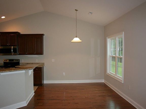 Spacious new home has it all! 21 ft covered front porch, wide entry foyer, formal dining room with tray ceiling and arched wall openings, light filled open great room with vaulted ceiling and ceiling fan, glass doors leading to the 20 x 13 screened rear porch and the patio. Gourmet kitchen has granite counter tops, solid wood easy close 36" cabinets with crown molding and knobs, a pantry closet, breakfast counter and a breakfast area. Private master bedroom retreat is 14 x 19 with vaulted ceiling, ceiling fan, a bay window sitting area, two huge walk in closets, double sinks, whirlpool tub plus a separate 5 ft walk in shower. Hardwood floors in the foyer, dining room, great room, breakfast nook, and halls. Tile in the Kitchen, laundry room and 3 baths. Finished bonus room with full bath and closet. Laundry room with linen closet. Oversized insulated and finished 2 car garage with utility sink, garage door opener, side pedestrian door. Brushed nickel plumbing fixtures. Gutters, irrigation system, security system, smooth ceilings, upgraded interior trim. Beautiful lake view. Square footage is approximate and not guaranteed. Buyer is responsible for verification.