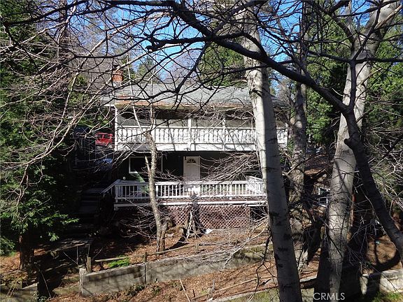 Great potential to own a home in Crestline. High vaulted ceilings in living room for that open feeling. Vinyl flooring in living room and ceiling fan. The fireplace is brick and is wood burning. Kitchen is open to living room with laminate counter tops and vinyl flooring. There is no stove or refrigerator. Lots of cupboard and drawer storage. Eating area at breakfast counter and dining area in living room. Main floor has bedroom with built in closet organization but no doors. Bathroom on main level has tub/shower with enclosure. Lower level includes large bonus/family room with free standing wood burning stove for additional heat. One bedroom downstairs has closet with storage under stairs. Other room/bedroom has no closet but hanging storage on one wall. Bathroom downstairs has shower. Upper deck off living room is enclosed and offers washer/dryer hookups. Dual pane aluminum windows throughout the house. Wood storage shed at end of driveway with shelving and electrical power. Yard backs up to stream and is across from national forest. Many walls in the house are paneled. Cosmetic work needed for flooring and some walls. Probate court needs to approve any offer with up to 20 days to accept.
