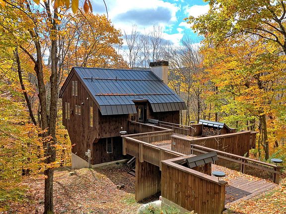 Inviting 4-Bedroom, 3.5-Bath Home in Private Hawk Resort Setting Tucked away at the end of a quiet road in the Hawk community, this beautifully refreshed four-level home offers the perfect blend of comfort, style, and privacy. Recent updates include new carpet, kitchen appliances, and washer/dryer. The main level features an open and welcoming layout with hardwood floors, a soaring fireplace in the living room, a well-appointed kitchen, a dining area, and a full bath. Step out onto the large covered deck and enjoy the peaceful surroundings—perfect for morning coffee or evening gatherings. Upstairs, a cozy bedroom with a half bath is currently used as a sitting area or den. On the mid-level, you'll find two additional bedrooms, a full bath, and a convenient second mudroom entry. The lower level offers a spacious bedroom with its own deck and full bath, providing a private sanctuary. Additional recent upgrades include a new boiler (2021) and a durable standing seam roof (2022), offering peace of mind for years to come. Ideally located between Killington and Okemo and just minutes from area lakes, this home is a perfect four-season getaway for skiing, hiking, swimming, or simply relaxing in nature.