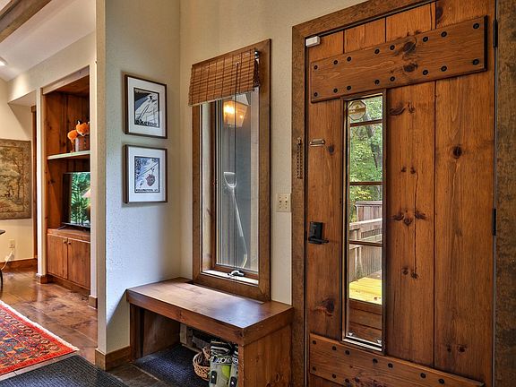 Soaring fireplaceHardwood floorsQuiet roadConvenient second mudroom entryCozy bedroomLarge covered deckNew carpet