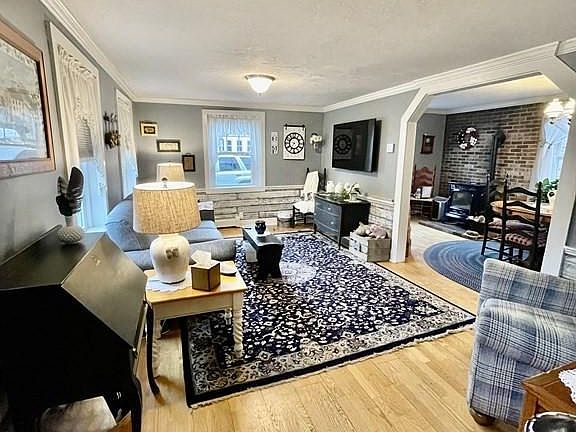 Adorably updated 2 bedroom, 1.5 bath antique Cape! This charming home has many recent updates including a newer roof, windows, heating system and septic system. Enter into the spacious living room that opens right into the dining room with pellet stove. The dining area flows into the kitchen, which was remodeled by the previous owners and has updated appliances and flooring. A half bath with laundry room are at the back. Upstairs is a full bath and two bedrooms. The larger bedroom has a nook for additional storage or seating. A large deck offers lots of room for grilling/entertaining in the fully-fenced backyard. A small storage shed is perfect for your gardening and lawn care needs. There's plenty of space in the yard for games and sports, a fire pit party and/or pets to run around. Close to Willard Brook and Pearl Hill State Parks and the Squannacook River.