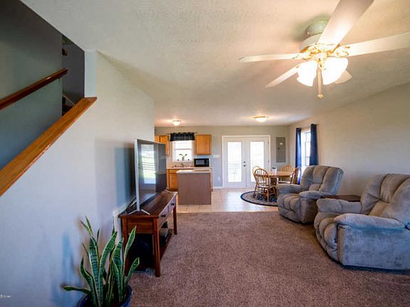 With nearly nine acres of flat pasture, along with a four-stall barn complete with a tack room and workshop, this home is a dream-come-true for the horse-enthusiast. As you drive up to the home you'll instantly take in the beautiful landscaping on either side of the front porch. A quick look around and you'll notice a fenced-in paddock and three gated pastures; perfect for the equine members of your family.The interior of the home features a highly desirable open floor plan. From the kitchen you have a full view of the dining area and spacious living room. Also on the first floor is the enormous master suite, roomy enough to accommodate even the largest bedroom furniture sets. The convenience of the first-floor laundry means that you'll never have to carry baskets up or down a fligh of stairs.Adjacent to the first-floor guest bathroom is the staircase, which allows quick access to the second-floor bedrooms and full bathroom.Just when you think that the cozy interior of the house can't be beat, the panorama from the rear deck comes into view. Sunsets are unbeatable as you sit at the back of the house and look west over the picturesque countryside. The setting sun will make you feel right at home.