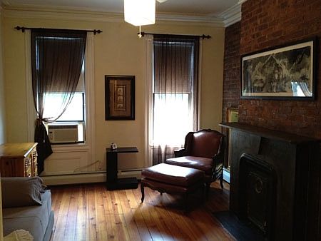 Clean and Charming 1 Bedrooma block to Historic Hamilton Park. Quiet tree-lined street. Original details include wide plank hardwood floors, exposed brick walls, slate mantle and plaster moldings and medallions. Walk-in closet. Renovated bathroom. Shared backyard. Laundry in basement. Steps to Hamilton Park Pubs & restaurants.