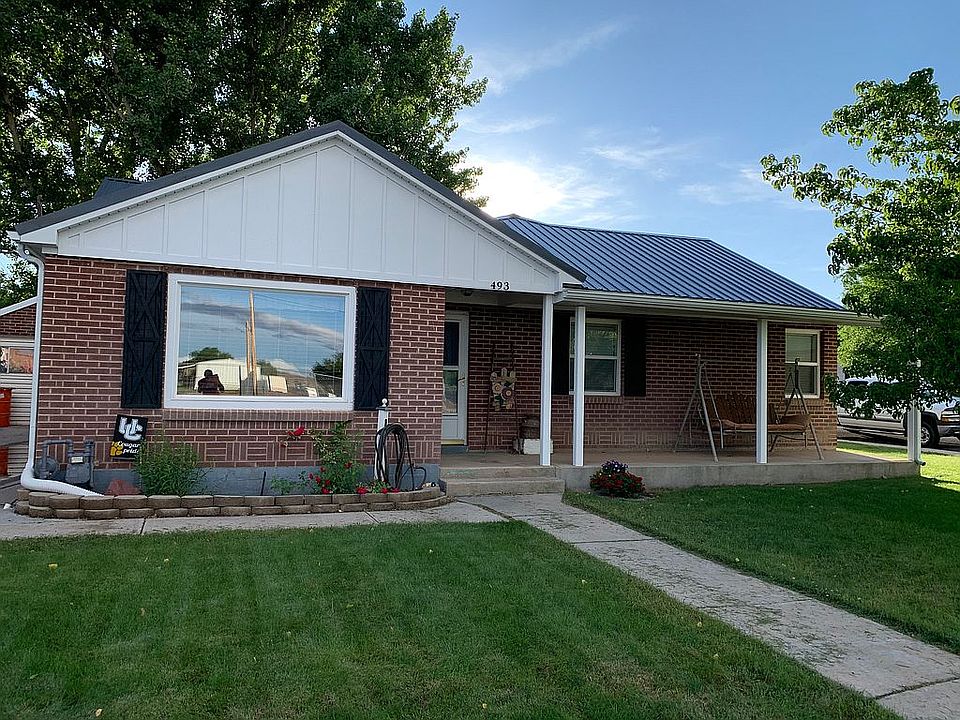 Nearly 2200 square foot brick home on a large corner lot. This home has a covered porch, 4 bedrooms, 3 baths, a craft room/office, living room and family room. The addition has a fully finished basement. The kitchen is spacious. There are two pantries. The home has hydronic heat with a new, high efficiency, on-demand water heater/boiler. A new roof, windows and extra insulation make the home even more energy efficient. The grass has an automatic sprinkler system. The established garden and yard have cost-saving secondary water. There is a wood stove to help cut heat costs or just enjoy a nice fire on a winter night. The home is close to schools, churches, restaurants and stores. Don't forget the back patio with a fire pit and tree fort to hang your hammocks on! Come see in person!