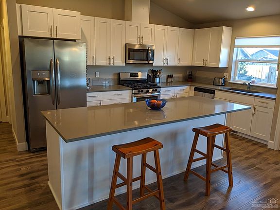 Come check out this wonderful 3 bedroom 2 bath one level home lived in for barely one year! This home was built with double wall construction, Milgard vinyl windows, and sound insulation between bedroom walls. There are quartz counters in the kitchen, beautiful flooring and cabinets, and an all stainless Frigidaire kitchen appliance package including the refrigerator! The master bedroom suite is spacious with a vaulted ceiling, a walk-in closet, and a double vanity. The great room which includes a gas fireplace w/tile surround is light and bright and opens to a nicely landscaped fully fence rear yard with an extended patio. There's an additional privacy fence and large concrete pad used for the hot tub area. Great location close to hospital and shopping. Better hurry on this one!