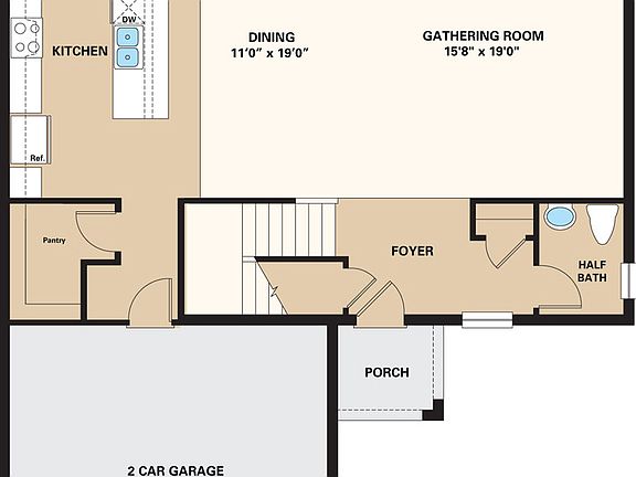 The Redbud is a spacious five-bedroom plan that offers plenty of room. A private guest suite was added to the main floor. An extensive living area comprises most of the ground floor of the home, with the kitchen on one end and the gathering room on the other. A casual dining room connects the two spaces and leads outside to the patio via sliding glass doors. An oversized walk-in pantry is conveniently located next to the owner's entrance for easy unloading and a powder room and coat closet is found adjacent to the foyer. Upstairs, a deluxe owner's retreat includes a well-equipped bath and large walk-in closet. The three secondary bedrooms share a bathroom with dual sinks and vanities plus interior door for added privacy.