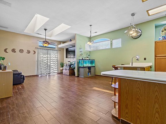 Charming 3 bed/2 bath corner lot home with pool and a bonus room, located in quiet SW Tulare. Multiple spaces throughout the home bring in natural sunlight via the skylights. The family room boasts a vaulted ceiling, open to the kitchen and breakfast nook. Bonus room as you enter the home with a cozy fireplace and sliding door for added privacy. Primary bedroom hosts a fireplace as well, with dual sinks, a jacuzzi tub, and slider to the backyard. Out back you'll find the sparkling pool, multiple shaded areas with the pergolas, and a gated dog run! Less than 1000 feet walking distance to Parkwood Meadows Park and about 1 mile to the Fairgrounds.