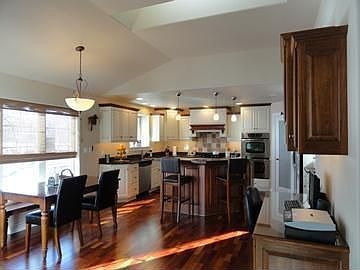 Luxury! Immaculate condition just built in 2005, w/all of the amenities! Imported Brazilian cherry throughout! 2 sided FP in den & living rm, kitchen w/appliances, island, Zodiaq counters,cherry cabinets w/lighting, walk-in pantry, formal dining, 2 sound zones, etc. Master-OS tub, tiled walk-in shower, etc. Level 2-3 bdrms;2 w/jack & jill ba & guest ste w/full ba. LL w/natural light, home theater, rec, family, wet bar, office/bdrm, full ba. 3.5 car att w/access to LL or mud rm. Plus Trex deck. LIKE NEW!
