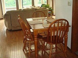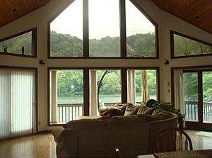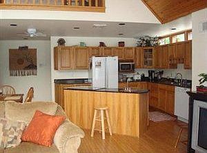 Chalet style Riverfront home w/new boat dock, boat house,gazeb chain link fenced yard, wrap around deck. Many recent renovations incl heat pump, new kitchen,w/island & granite countertops, pellet burner ceramic stove in great room area, Loft master Bedroom, New 2 car det.garage.